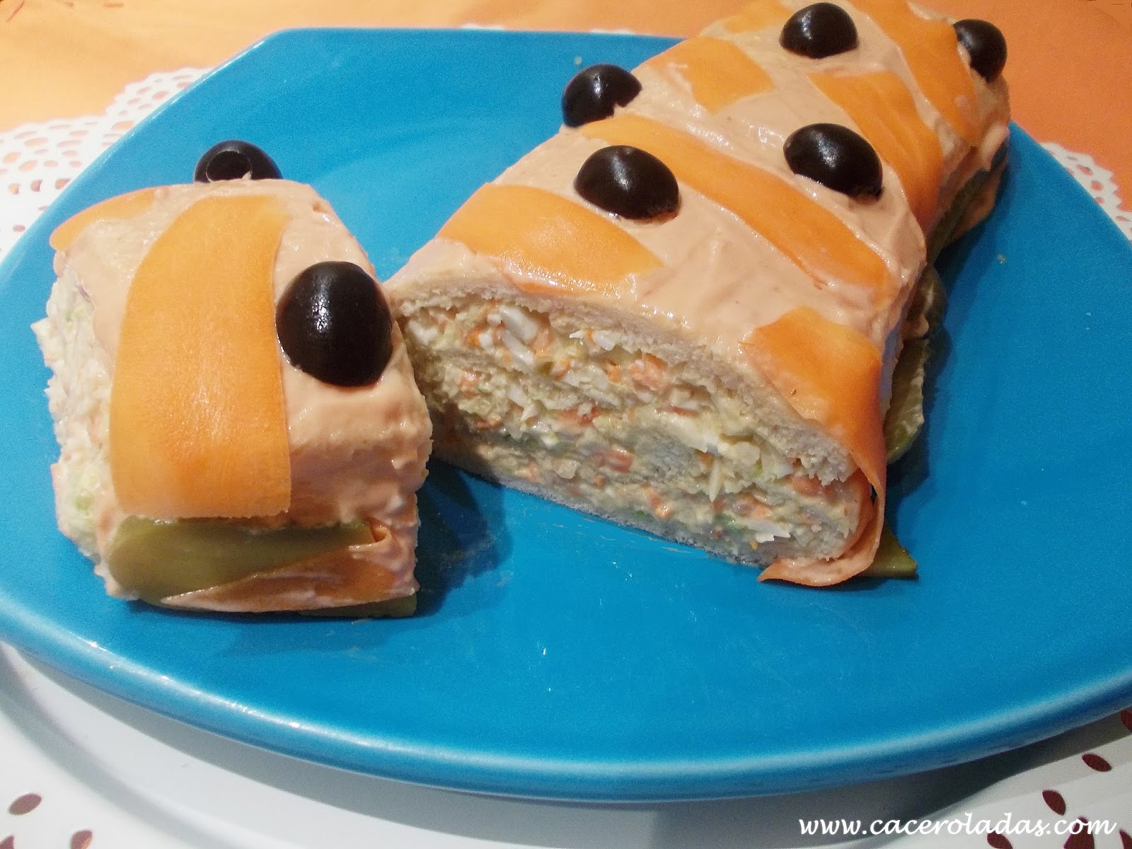 Deliciosa receta de brazo de gitano salado de cangrejo con pan de molde una receta muy fácil y rápida de hacer que podéis tener preparada con antelación para cualquier ocasión.