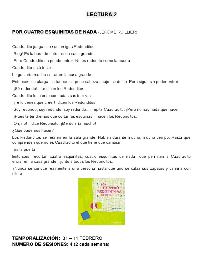 Cuento por cuatro esquinitas de nada para imprimir. 08 nov 2014 explora el tablero por cuatro esquinitas de nada de sorayayela que 134 personas siguen en pinterest. 21 sep 2019 explora el tablero de esther alonso freire por cuatro esquinitas de nada en pinterest. Por cuatro esquinitas de nada es una historia que habla de aceptación de superación y de autoestima. Proponemos el visionado de un cuento y preguntas para reflexionar en familia sobre la diversidad y la inclusión.
