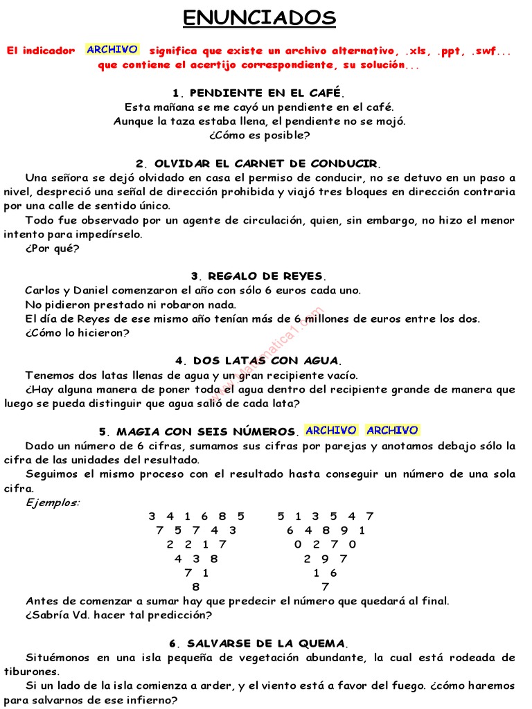 El gran libro de los acertijos de ingenio pdf. Juegos de razonamiento matemático. El examen de muchas felices ideas puede abrir en ed espíritu cauces que hagan surgir chispas semejantes en circunstancias parecidas. Partes 1 2 y 3 b n español tapa blanda 26 noviembre 2018 de jesús escudero martín autor 5 0 de 5 estrellas 3 valoraciones. Puedes encontrar libros.
