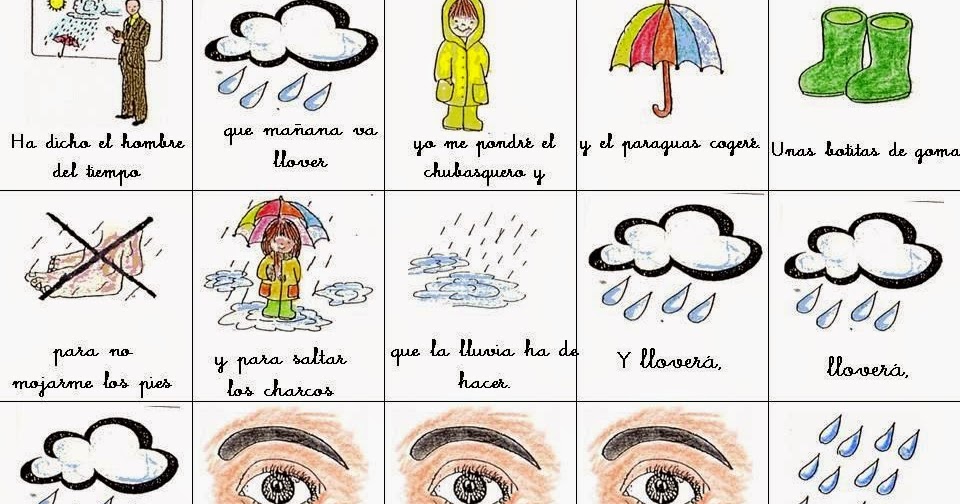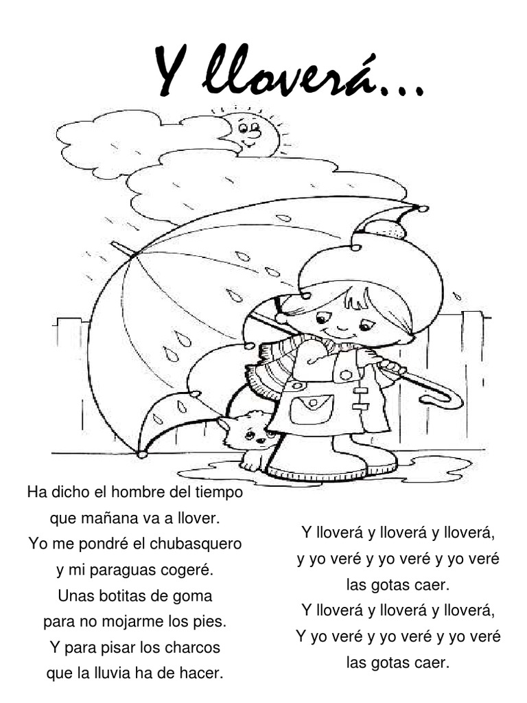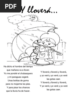 Ha dicho el hombre del tiempo que mañana va a llover. Ha dicho el hombre del tiempo que mañana va a llover. Y para pisar los charcos que la lluvia ha de hacer. Yo me pondré el chubasquero y mi paraguas cogeré.