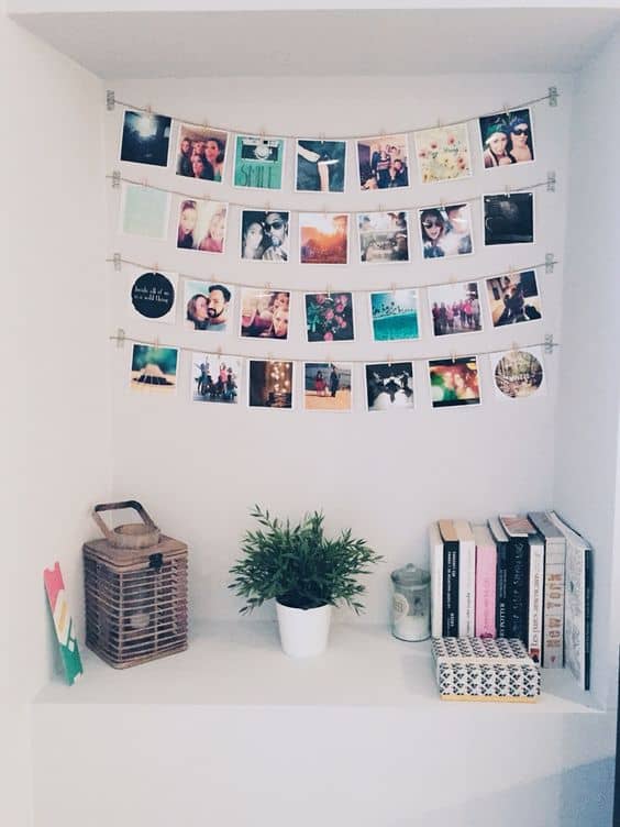 El gran formato como ya he dicho arriba tiene muchas ventajas. Una vez elegida la pared de nuestra casa que queramos decorar vamos clavando las chinchetas no importa la distancia entre ellas ni la simetría. Nuestras fotos favoritas reveladas una cuerda unas pinzas pequeñas todo incluido en el kit de revelado retro de hofmann y un soporte para la pared chinchetas por ejemplo. Colocar fotos en la pared de la habitación es algo sencillo pero como todas las cosas sencillas hay muchas formas de hacerlo.