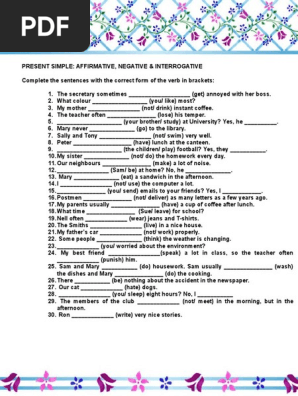 Past Simple Affirmative Negative Interrogative Exercises Pdf