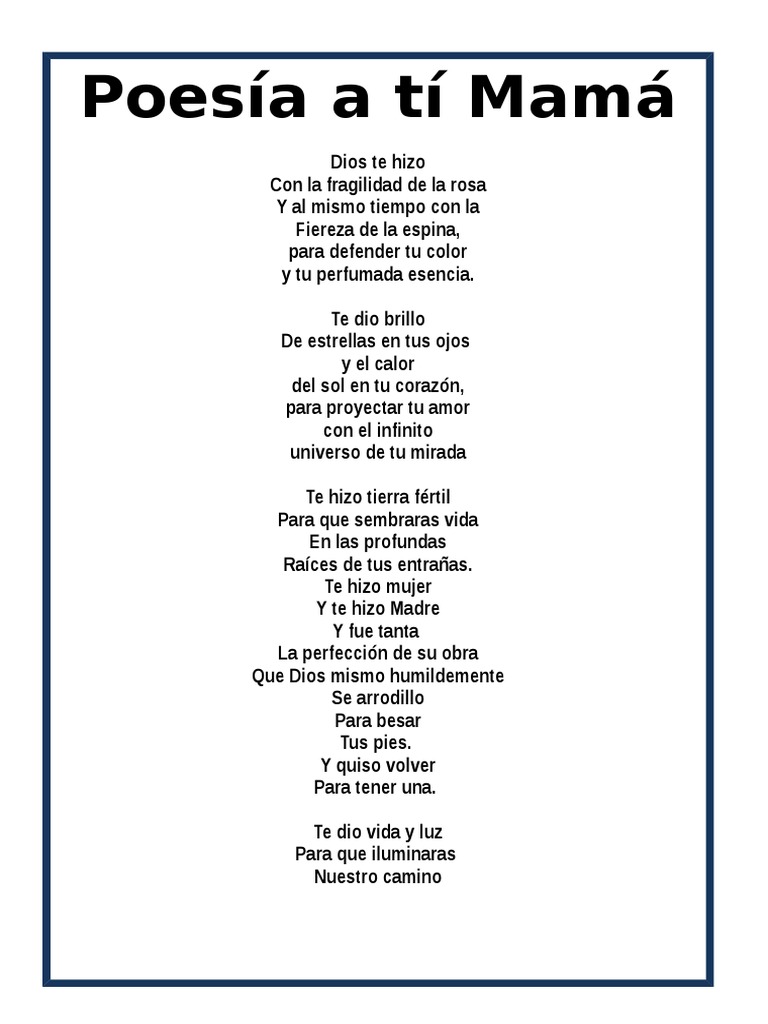 Regalar poesías para el 10 de mayo o para cuando se celebre el día de la madre en su país siempre es una idea interesante para homenajearlas. A mi madre vicente riva palacio. Los mejores poemas para el día de la madre miguel de unamuno escritor y filósofo español perteneciente a la generación del 98 nos dejó el poema madre llévame a la cama. Son breves poemas ideales para añadir en las notas del regalo del día de la madre.