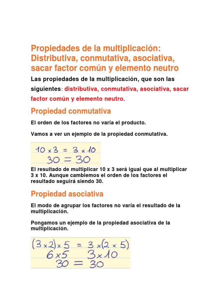 En las operaciones que se incluyen en aritmética álgebra y análisis matemático se siguen ciertas condiciones relacionadas con las propiedades numéricas llamadas. Explicación de las propiedades conmutativa asociativa y distributiva de la multiplic. Estas son las propiedades conmutativa asociativa elemento neutro distributiva y clausura. Ejercicios resueltos de la propiedad distributiva y sacar factor común.