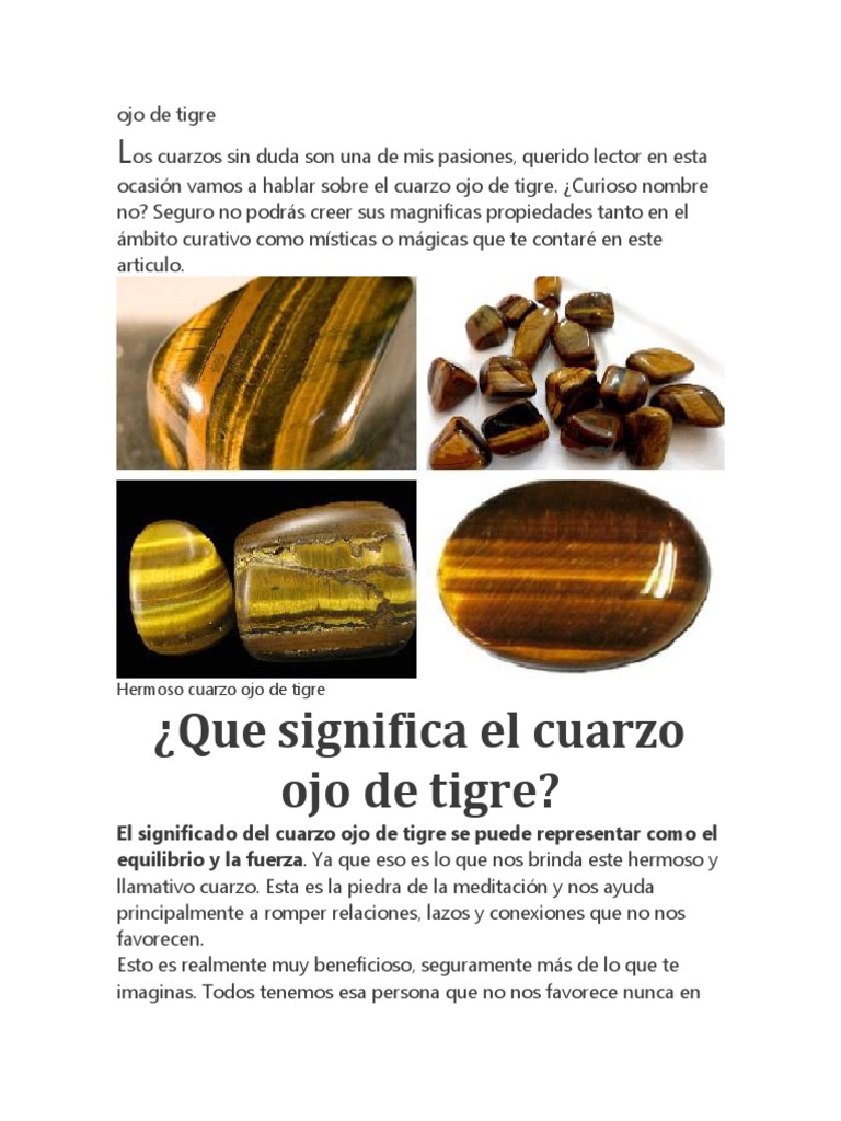 Qué significado tiene la piedra ojo de tigre. El roja motiva acelera el metabolismo y mejora las relaciones sexuales. Los beneficios de los ojos de tigre van más allá del aspecto físico y actúan sobre todo sobre el alma y la mente de las personas. El ojo de tigre es una variedad de cuarzo de color amarillo y pardo dorado en bandas con reflejos tornasolados apreciada como piedra semipreciosa.