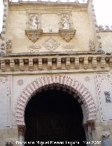 Se trata de una de las puertas más antiguas del conjunto monumental puesto que sus orígenes se remontan a la mezquita fundacional de abderramán i. Puerta de las palmas también conocida como puerta de las bendiciones. En esta puerta eran bendecidas las banderas de las tropas que partían a la conquista de granada. Hay un bosque de 856 columnas de mármol jaspe y granito el máximo número de columnas fue 1003 sobre las que se apoyan trescientos sesenta y cinco arcos de herradura bicolores.