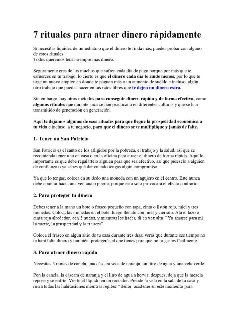 Para atraer dinero rápido. El hechizo para atraer dinero te será de gran servicio cuando el efectivo es escaso y los problemas económicos te acorralan las deudas no paran de llegar o tienes que resolver algo muy rápido utilizando un dinero que no posees. No es un ritual para que te vuelvas millonario de la noche a la mañana ni que soluciones de por vida tus. Atrae el dinero con este poderoso amuleto casero es muy fácil de hacer.