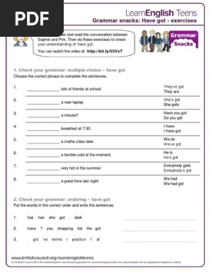 To Be Or Have Got Exercises Pdf
