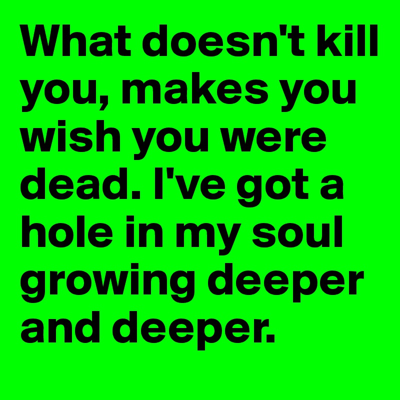 What doesn t kill you makes you wish you were dead got a hole in my soul growing deeper and deeper and i can t take one more moment of this silence the loneliness is haunting me and the weight of the worlds getting harder to hold up. What doesn t kill you makes you wish you were dead. We had a show tomorrow night i was laying on the bus pouting like a child. I was bored and josh was out doing i don t even know he probably told me but i don t think i was listening to the whole thing.